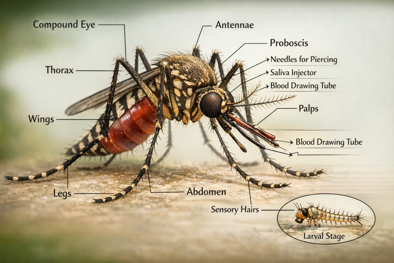 The mosquito’s compound eyes allow it to detect movement effectively, while its lightweight yet strong body structure enables sustained flight. Even its life cycle—from egg to larva, pupa, and adult—is perfectly timed and regulated according to environmental conditions.